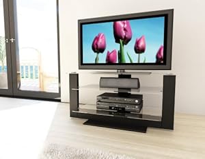 Accomodates most 37" - 50" Televisions..built in entertainment center plans Sonax AT-1420 Atlantic 40-Inch Midnight Black TV Stand with Glass Shelves Features.